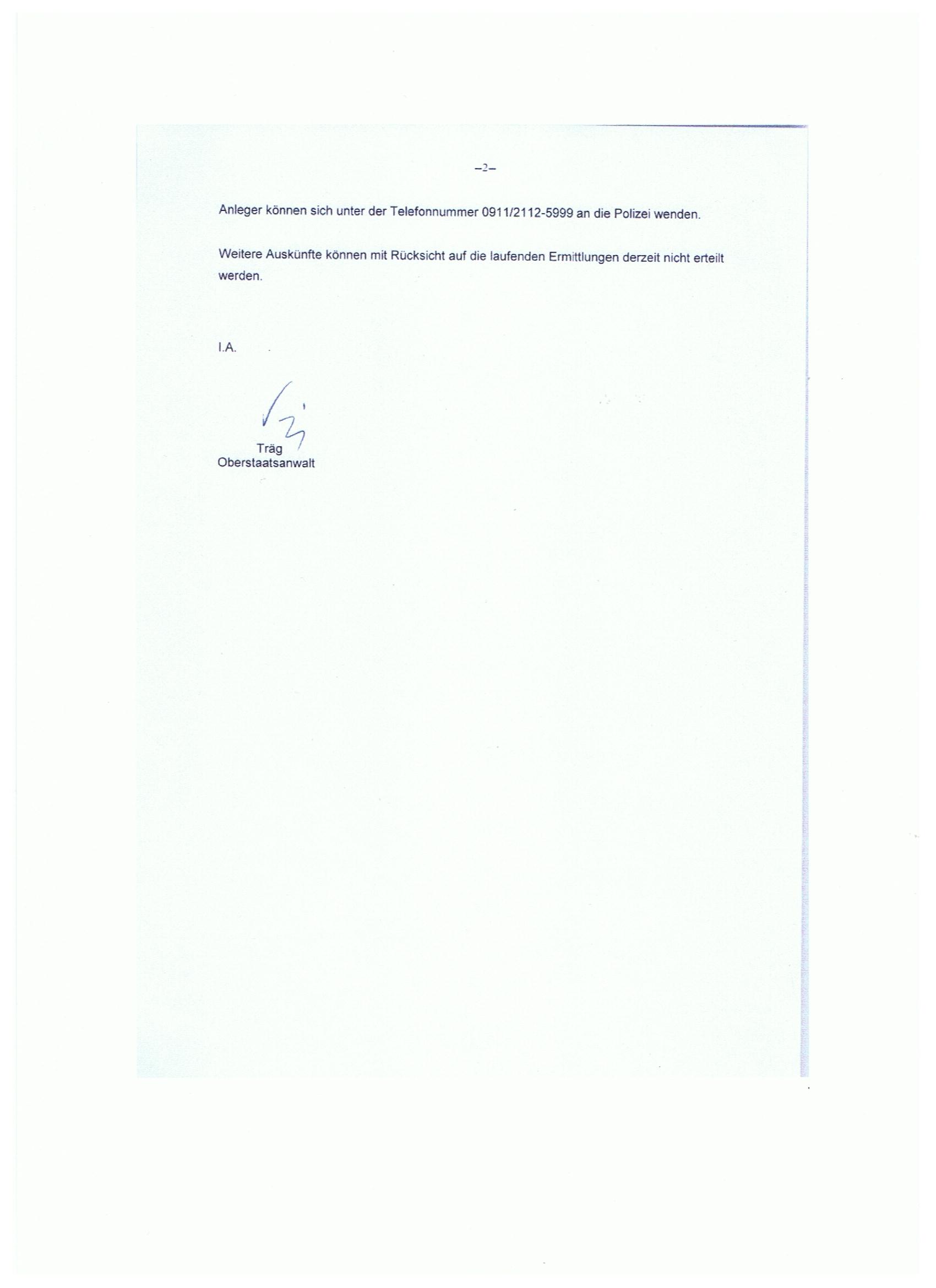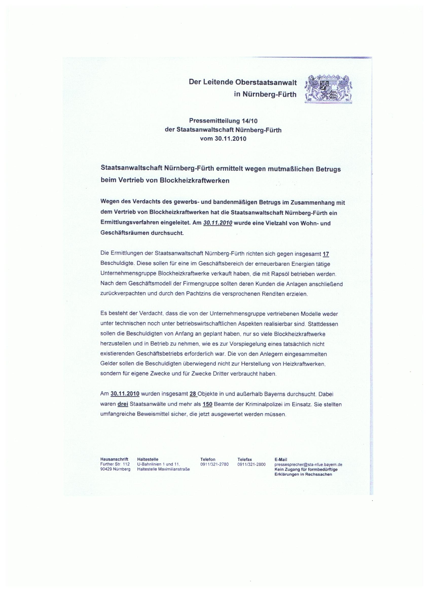 Presseerklärung der Staatsanwaltschaft vom 30.11.2010