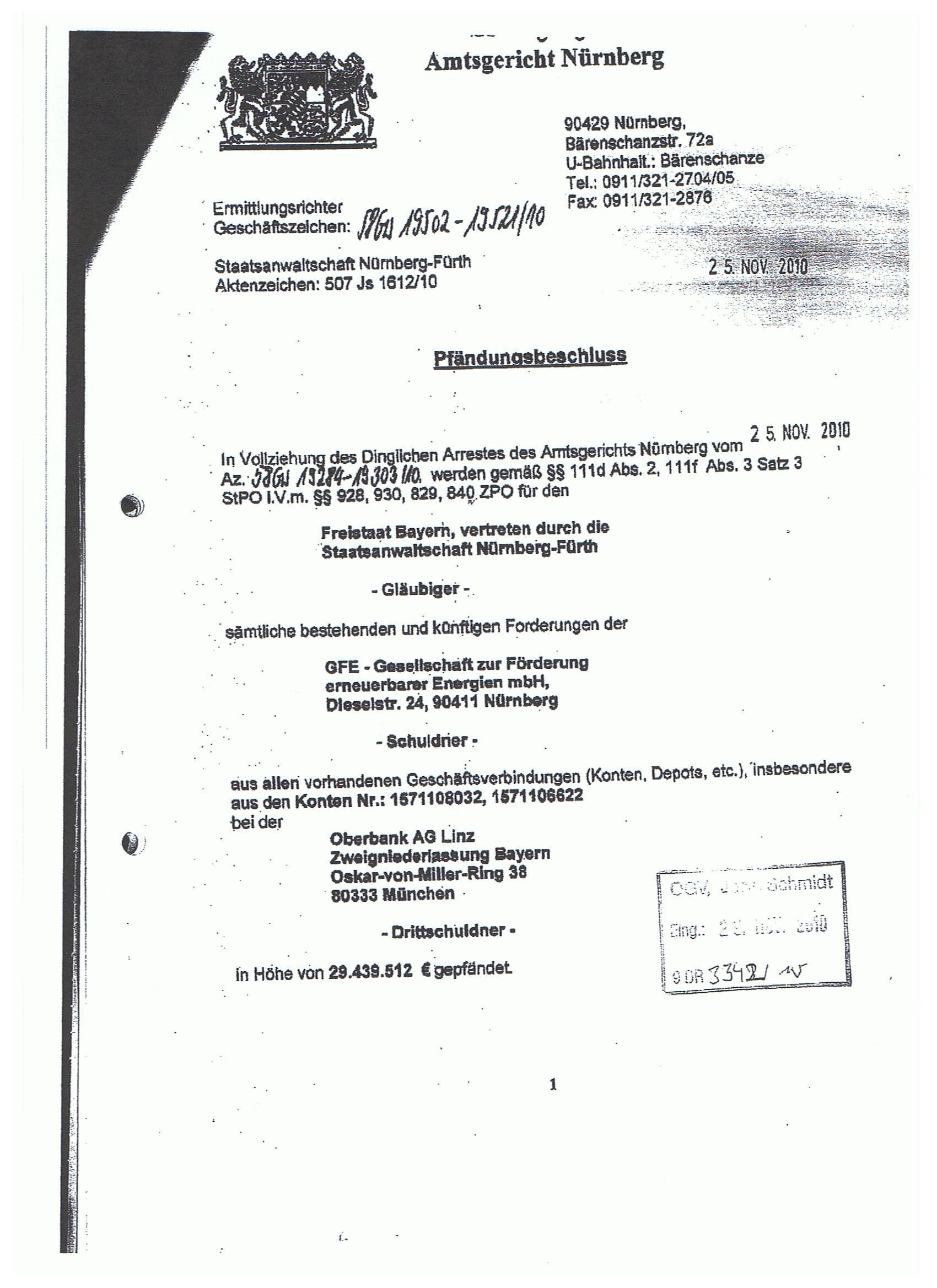 Ach ja, zu den 29.439.512 EUR, die da gepfändet werden sollten, äussert sich das StGB