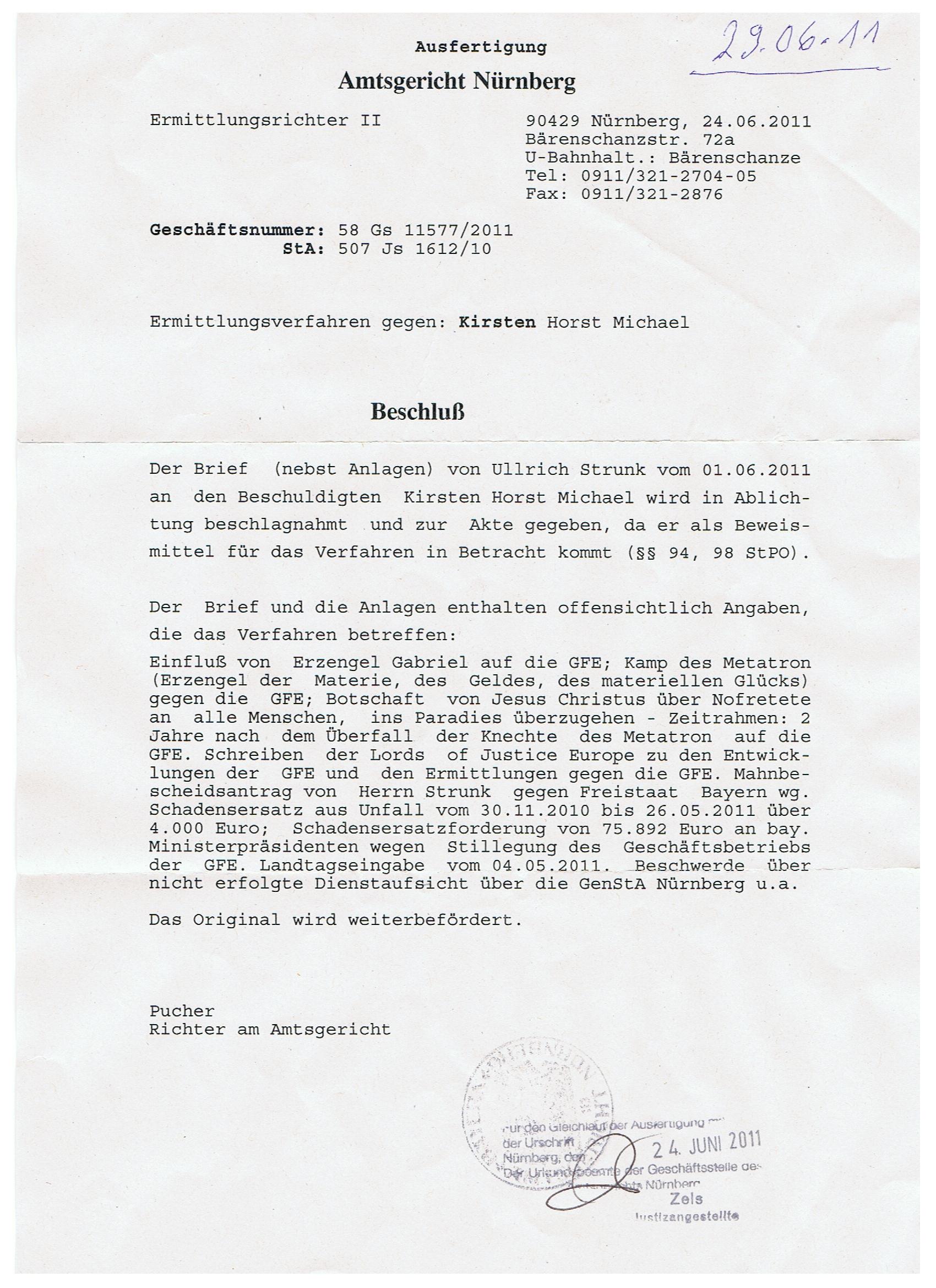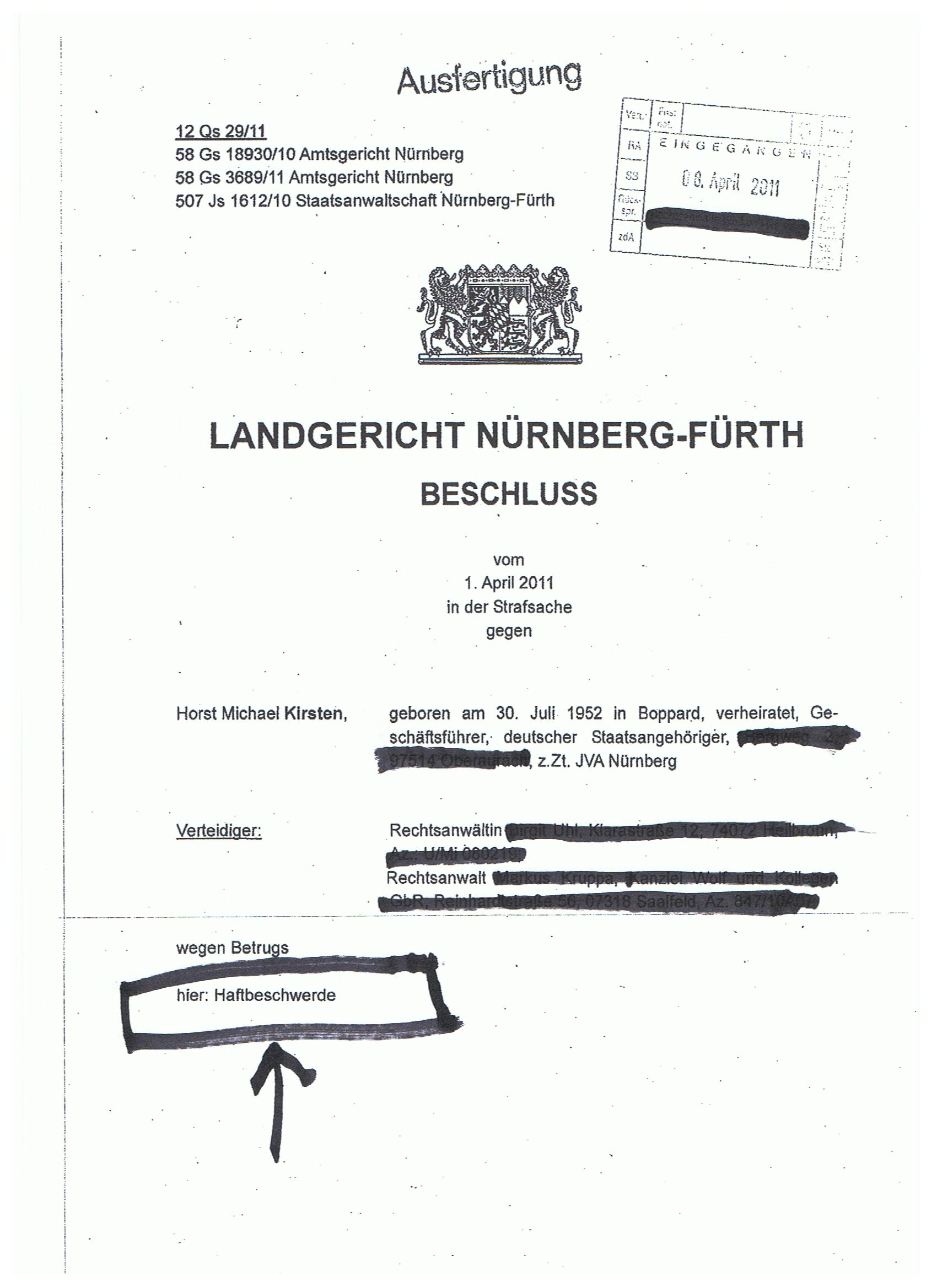 Ich habe einmal an der Hochschule gelernt, dass es oberste Pflicht sei eines Gerichtes den „ Willen der Beteiligten „ zu erkunden. Und dies hätte man innerhalb von einer Woche problemlos tun können, denn dazu hätte man lediglich die beiden inhaftierten Gesellschafter Horst Kirsten und Karl-Heinz Zumkeller befragen müssen und auch problemlos können, denn diese sind schliesslich auf der Basis eines Arrestbeschlusses des AG Nürnberg inhaftiert worden !