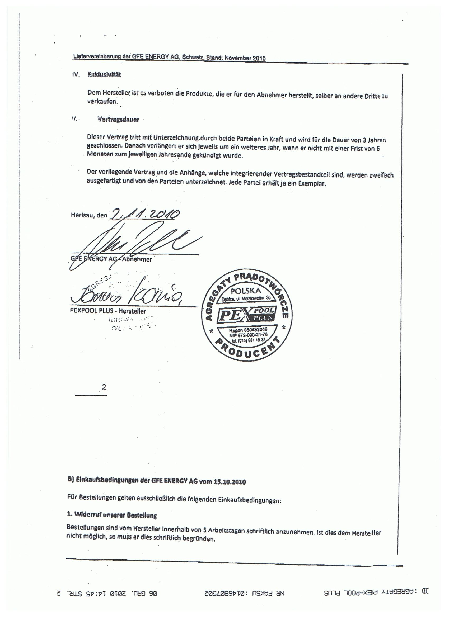 Umfangreiche Bestellungen mit langfristigen Lieferabrufen wurden dort getätigt und Anfang November 2010 konnte sogar zusätzlich ein Vertrag mit einer polnischen Firma abgeschlossen werden, die sich verpflichtete, 50 komplette Container jeden Monat zu liefern !