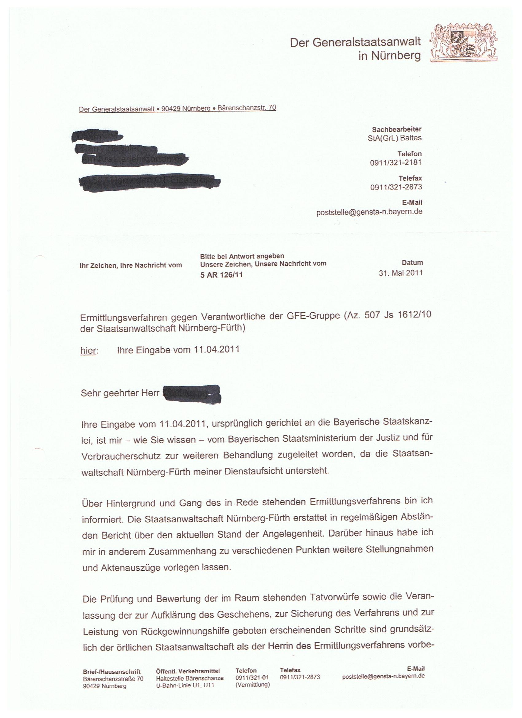 Warum hat das Landgericht dies nicht getan ? Das erfahren Sie über die folgende Beschwerde beim Landgericht in Nürnberg :