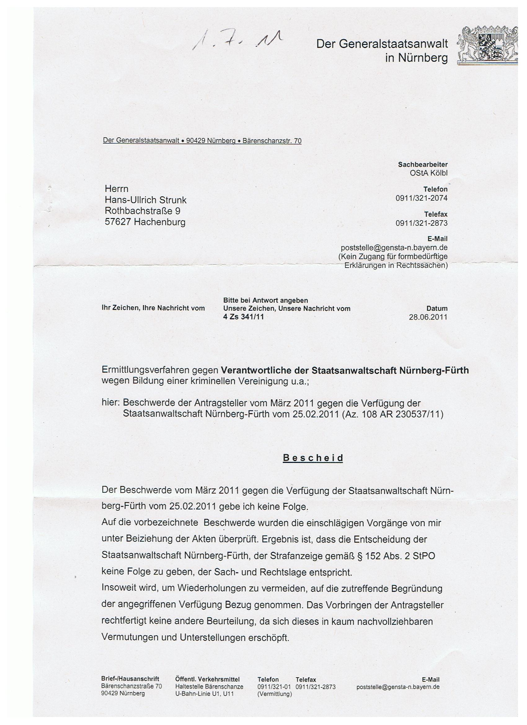 Da steht : " Freistaat Bayern, vertreten von der Staatsanwaltschaft Nürnberg-Fürth "