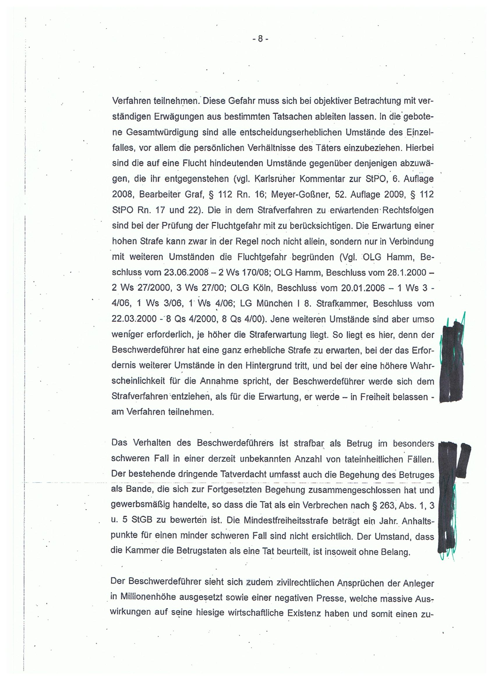 " Stattdessen sollen die Beschuldigten von Anfang an geplant haben, nur soviele Blockheizkraftwerke herzustellen und in Betrieb zu nehmen,wie es zur Vorspiegelung eines nicht existierenden Geschäftsbetriebes erforderlich war. "