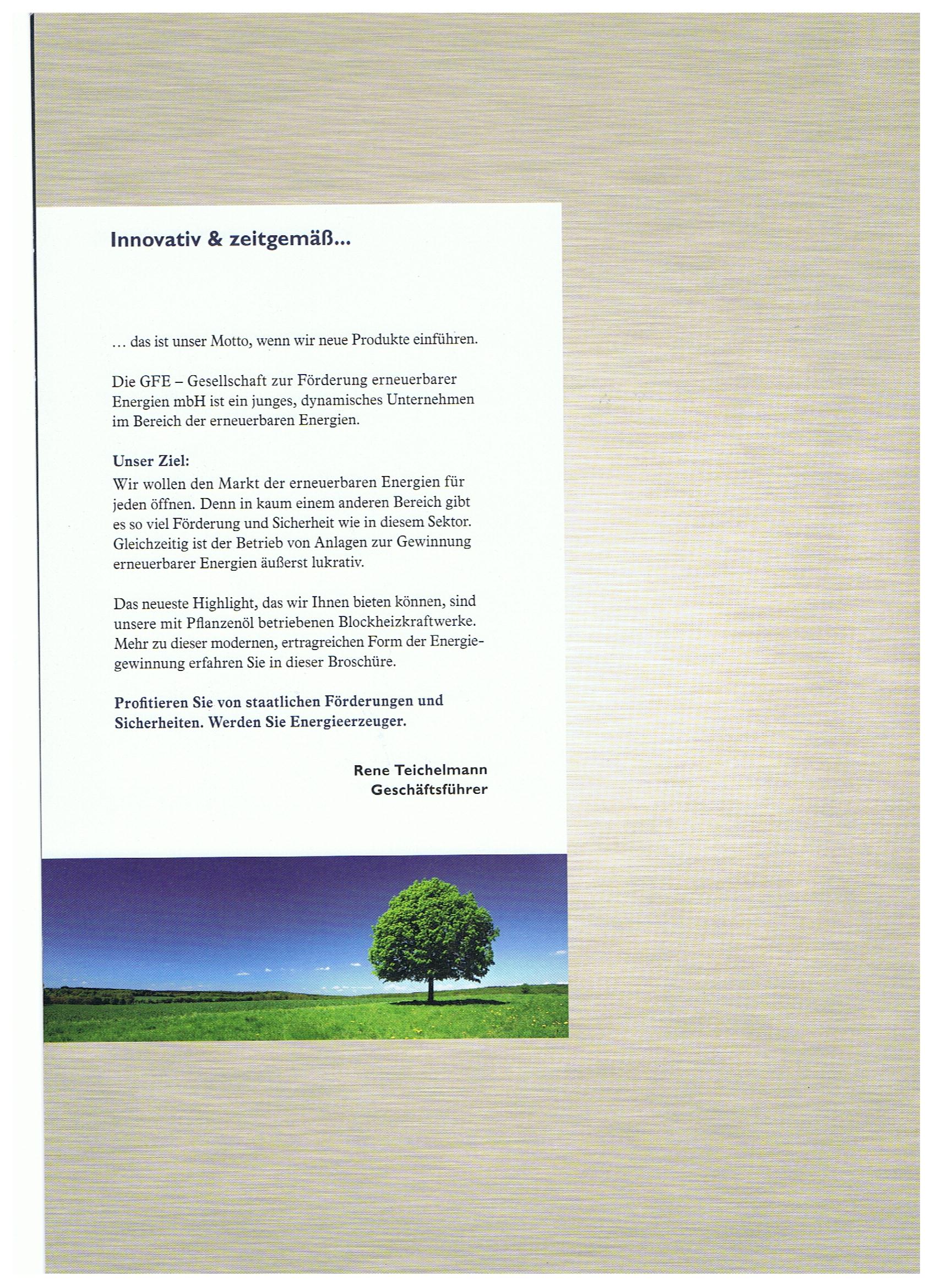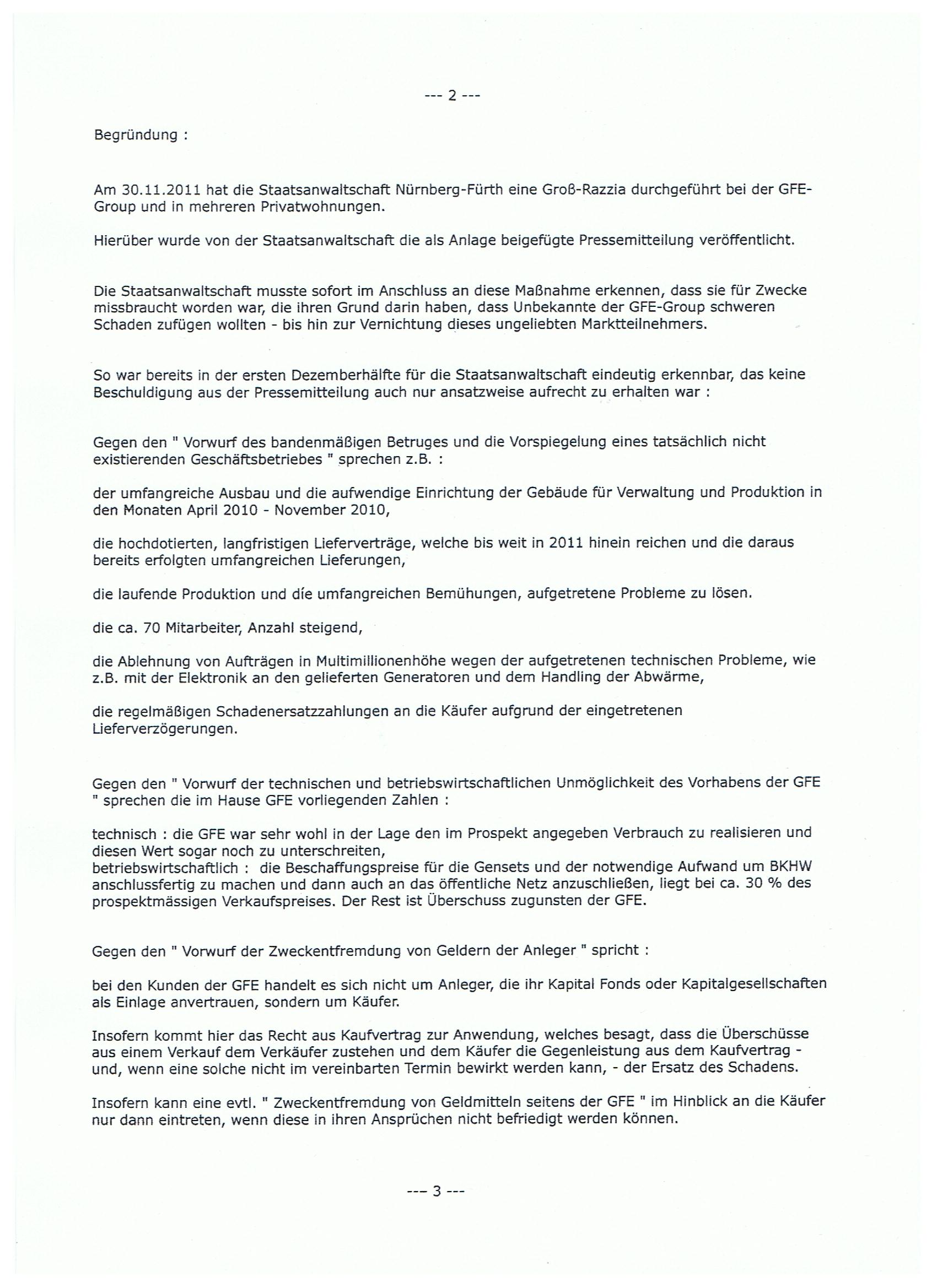 Betr.: " Wundermotor " der ehemaligen " GFE-Group " in 90441 Nürnberg, Dieselstrasse 24