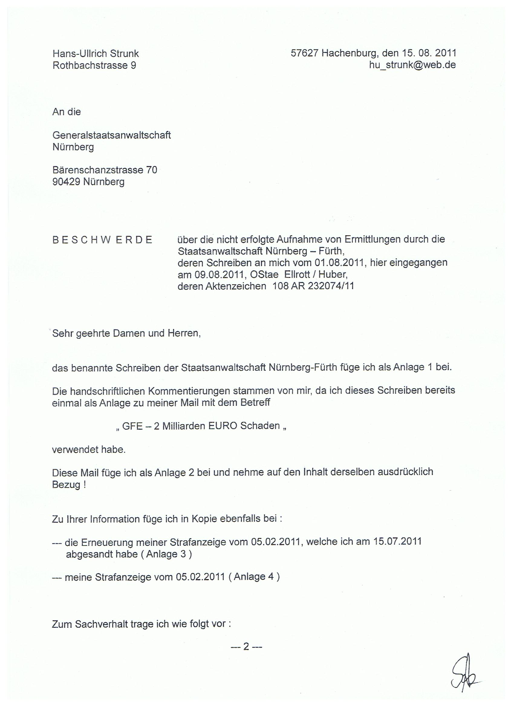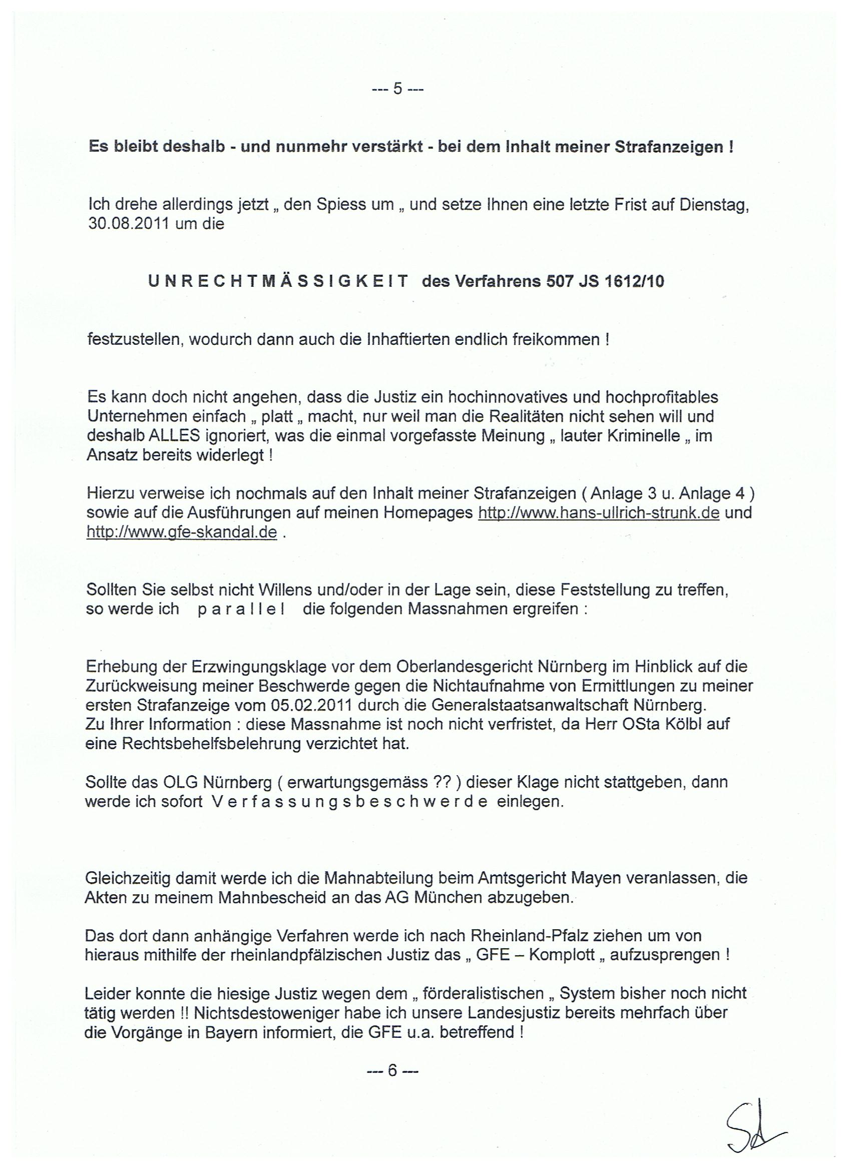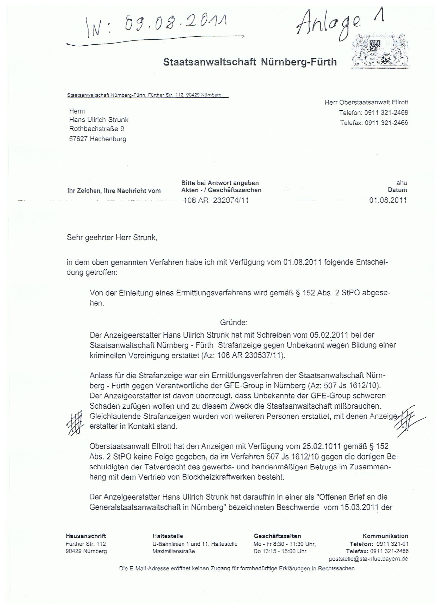 Nachdem ich wiederum Beschwerde eingelegt hatte bei der Generalstaatsanwaltschaft in Nürnberg, erhielt ich von dort den folgenden Bescheid :