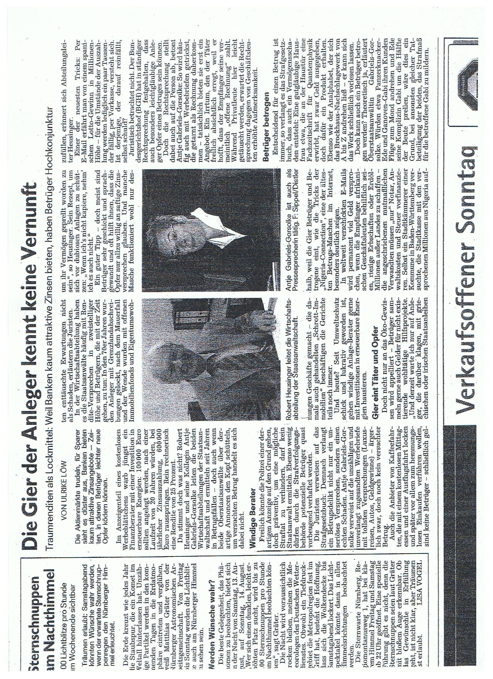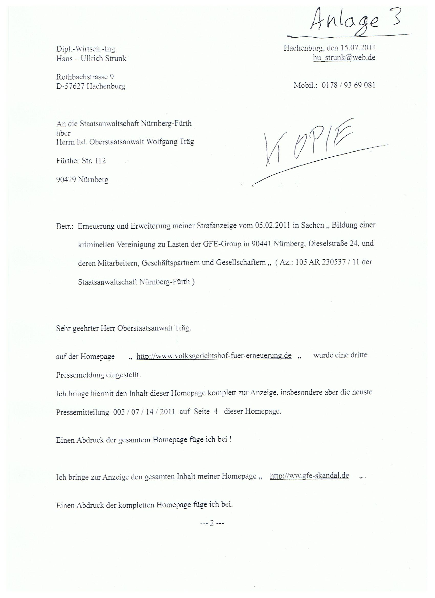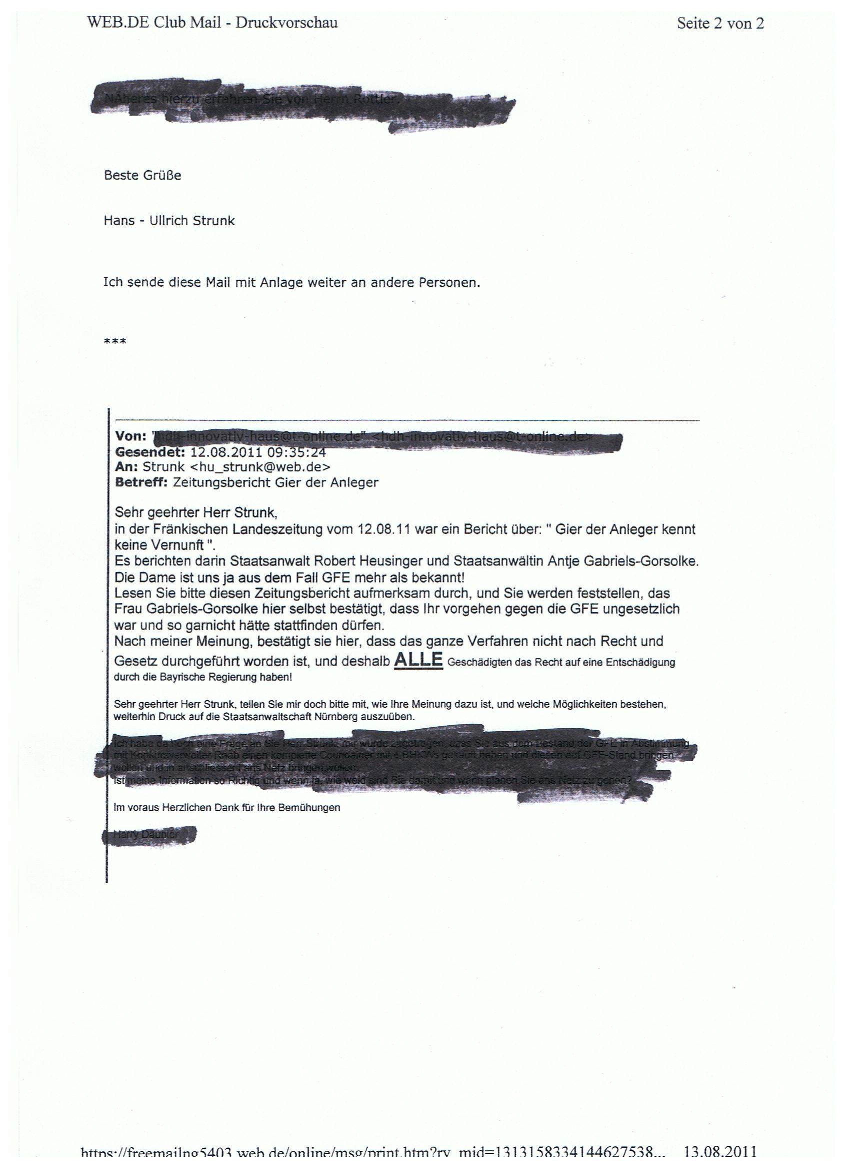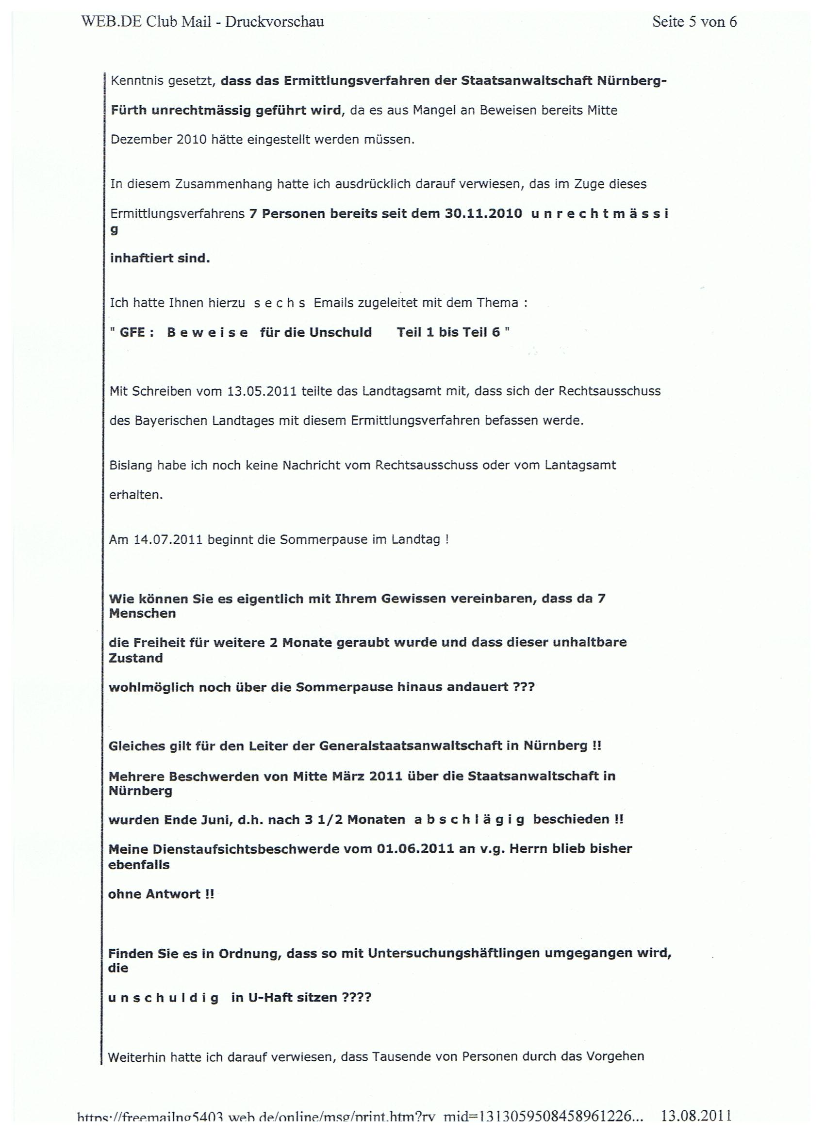 Diese Personen wurden geschädigt durch die Verletzung ihrer gesetzlich garantierten Grundrechte durch das Vorgehen der Staatsanwaltschaft Nürnberg-Fürth gegen die GFE - Group in Nürnberg am 30.11.2010.