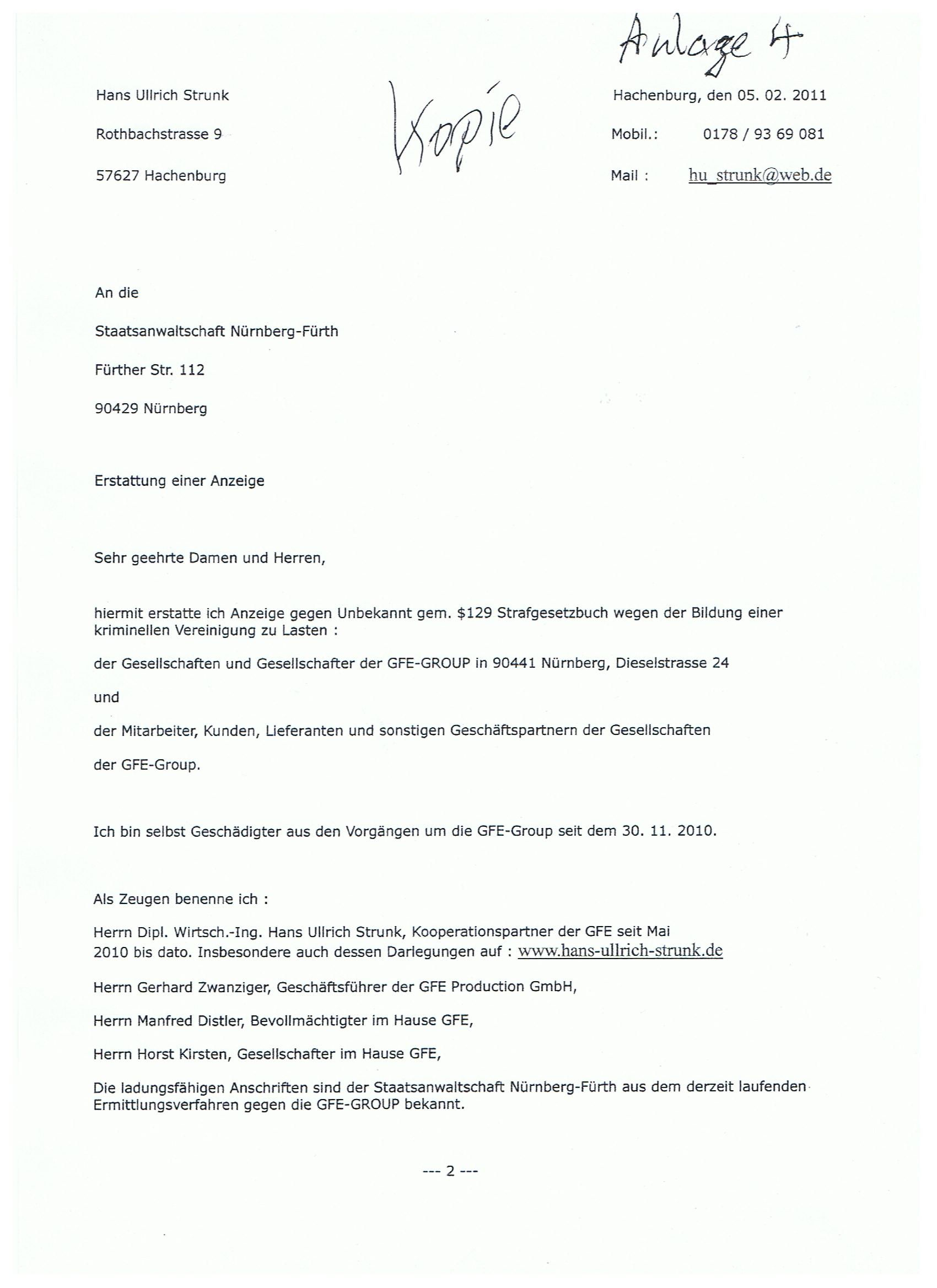 Hans - Ullrich Strunk Postfach 1221 D-57621 Hachenburg