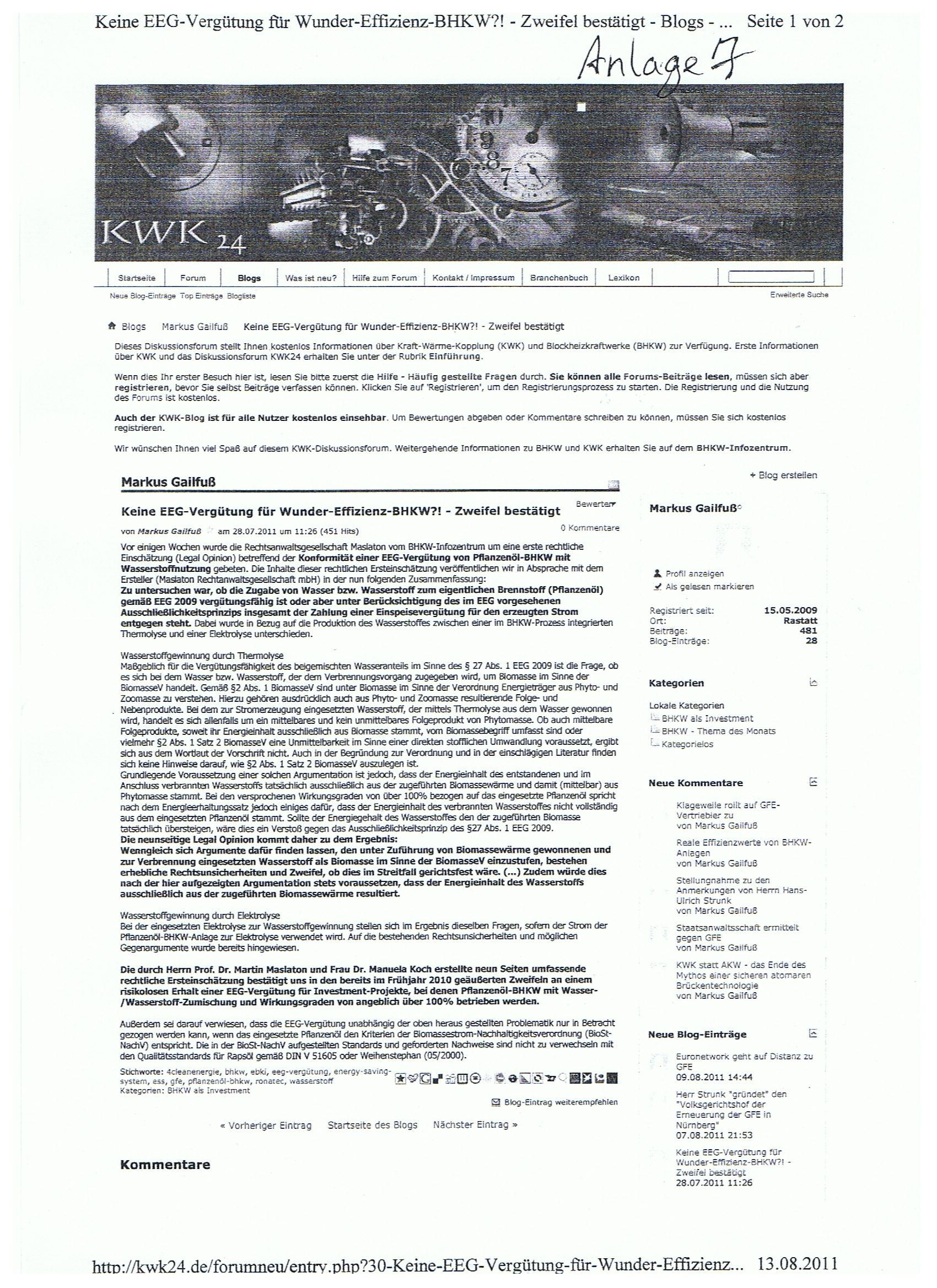 Ich möchte Sie, als anerkannter BHKW-Experte, deshalb bitten, zu meinem nachstehenden Vortrag eine Bewertung aus Ihrer Sicht - oder durch von Ihnen beauftragte Gutachter - abzugeben und verweise in diesem Zusammenhang auf ein von Ihnen veranlasstes Gutachten, was ich weiter oben auf dieser Seite zitiere.